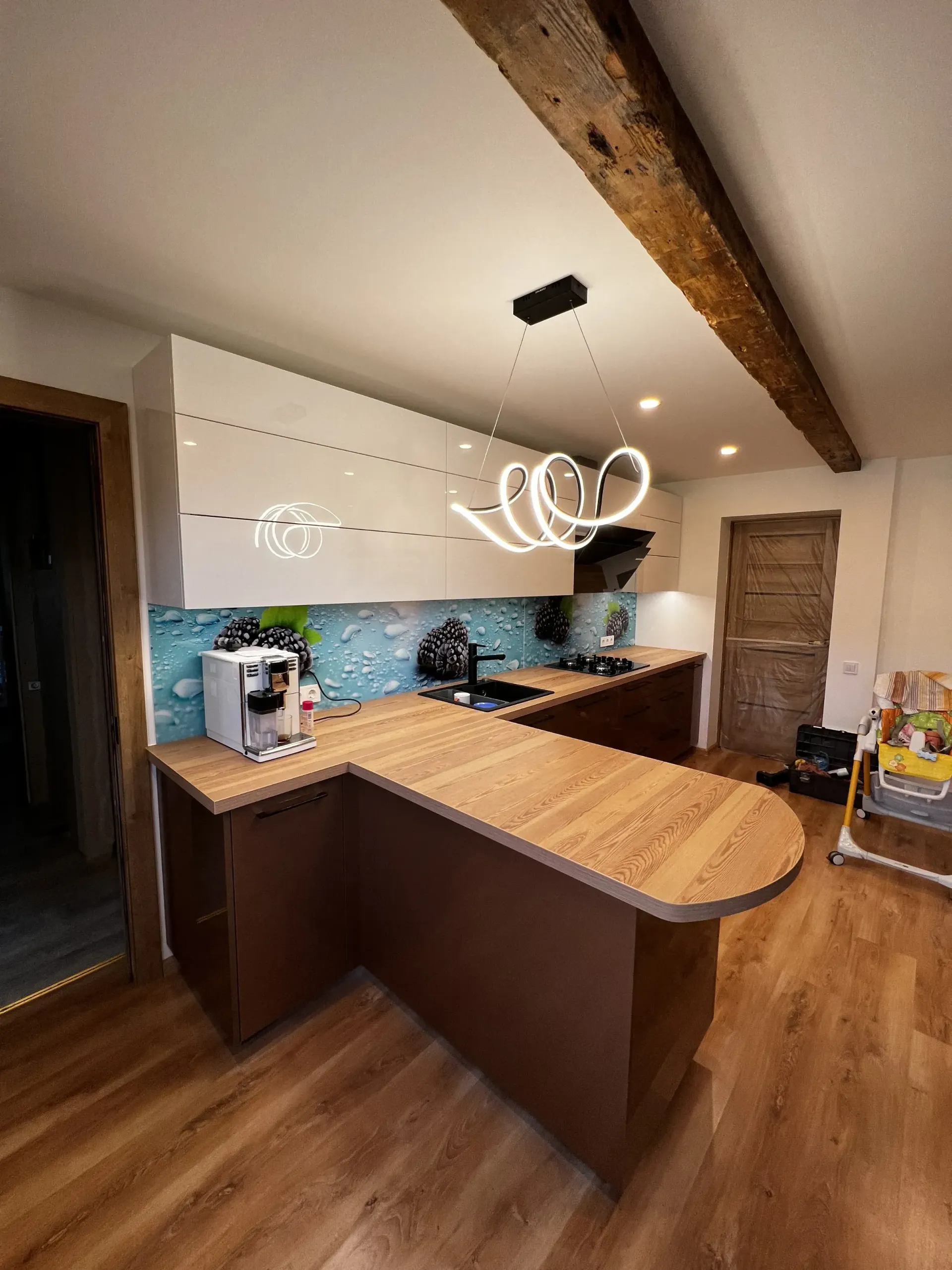 - Iebūvētas Led lampiņas augšējos skapīšos.